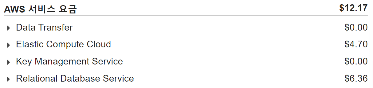 Relational Database Service는 DB 부분에서 비용이 청구된 것 같은데 캘리포니아를 기준으로 한 사이트에서 비용이 많이 청구되어서 서버를 내려도 Rds에 남아있어서 그런 것 같다.